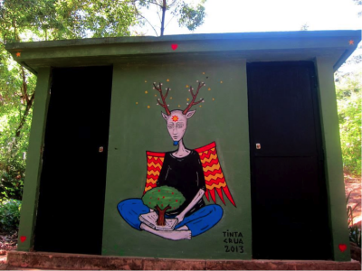 Les œuvres encadrées de TINTA CRUA sont assez rares, car il expose peu, préférant porter ses messages dans la rue, sur les murs et les mobiliers urbains, que dans les salons.