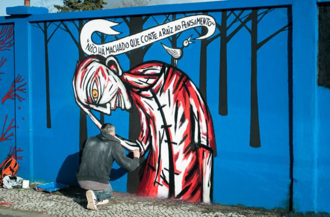 TINTA CRUA fait partie de la nouvelle scène Lisboète de Street Artists talentueux qui présentent sur toutes les surfaces qu’offre la ville de Lisbonne leurs créations.